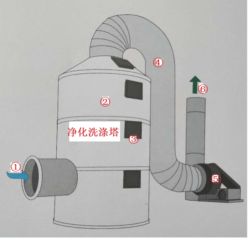 ① 廢氣進(jìn)口 ② 塔體 ③ 觀察口